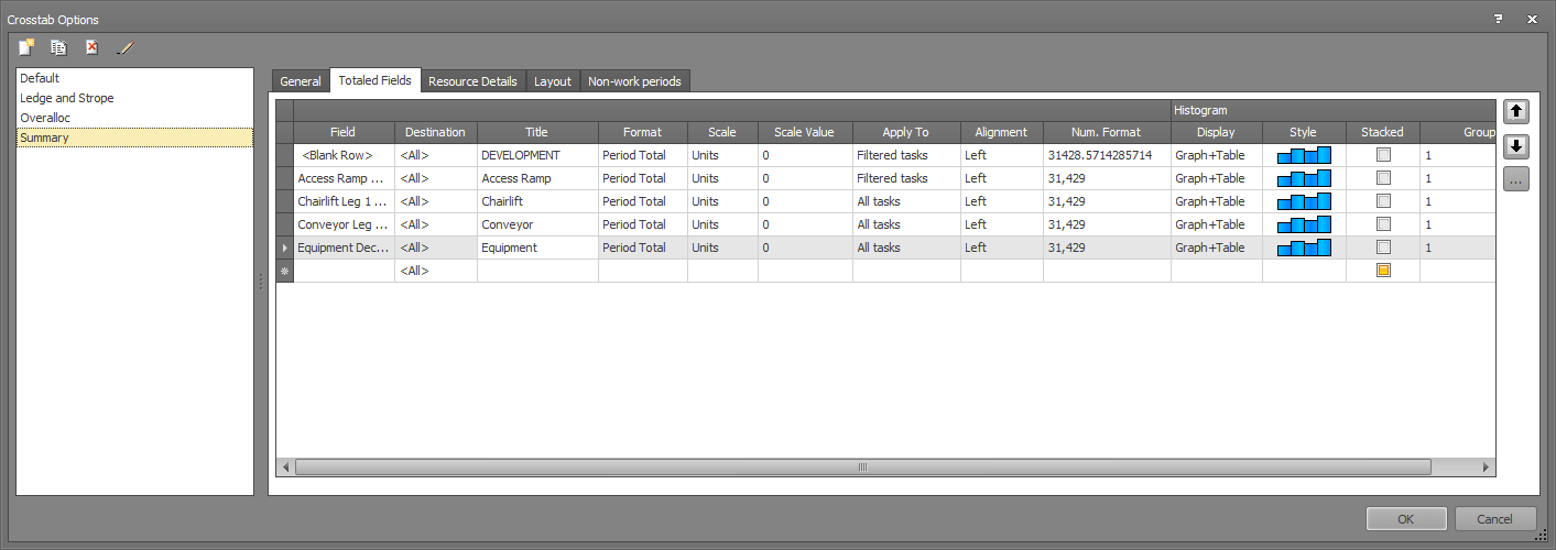 Crosstab Options: Totaled Fields