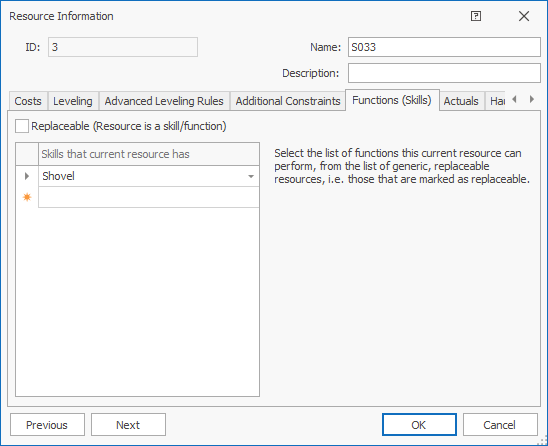 In this case you can select one or more resources to replace from the grid labelled Skills that current resource has.