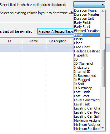 Tasks to be sent by email can be selected by