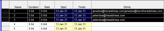 Add one or more email addresses to the EMAIL text field for each task. A single task's EMAIL text field can contain more than one email address. Addresses are separated by a comma (,) or semi-colon (;).