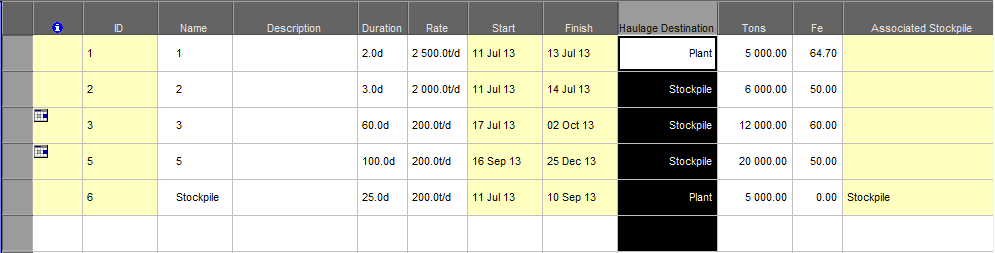 The system automatically generates an extraction task for each stockpile. The extraction task can be scheduled like any normal task, and resources assigned. The haulage destination on the extraction task can be set to another destination, for example, plant.