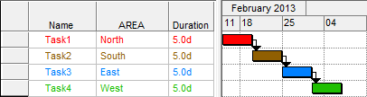 - Critical Bar - Select this to display the critical path for the project. This is the path of activities that defines the end of the schedule.
