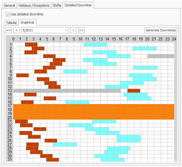 | Style | Select the color and pattern for this down-time type. This is used when displaying down-time on the bar chart, or when setting up a scheduling calendar using the graphical interface as shwon below. |