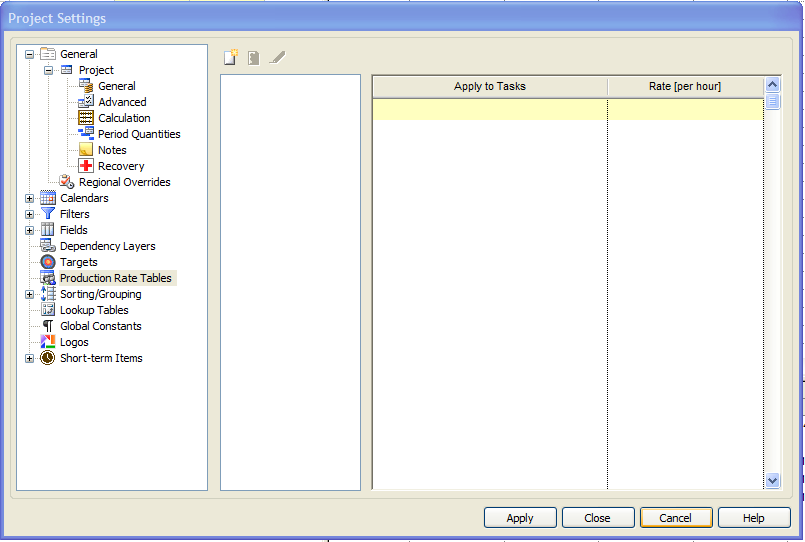 | Apply to Tasks | Specifies the Tasks to which the Production Rate applies.