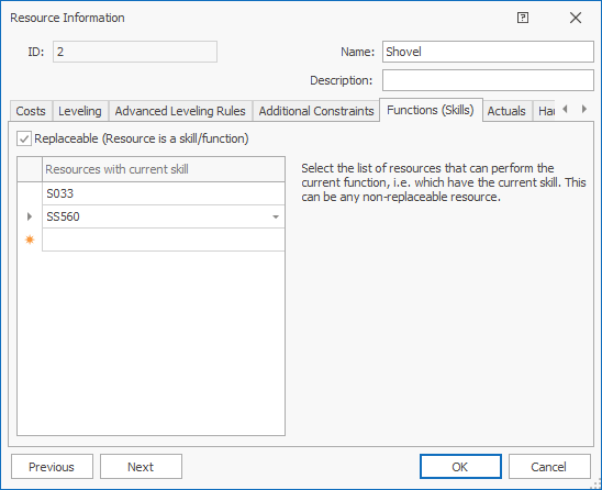 In this case you can select one or more resources to replace from the grid labelled Skills that current resource has.