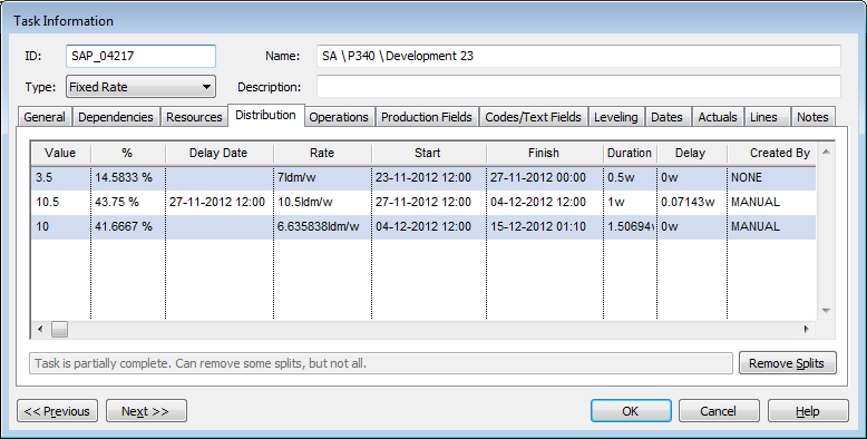 | Delay | The difference between the date of the finish of the previous split and the start date of the current split. |