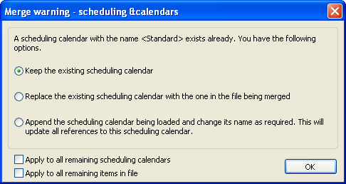 - The Merge warning - for example the scheduling calendars screen displays: