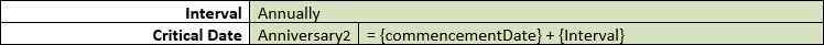 Note: The Interval field may also be referred to as the Due After, Due On, or Term field. The default templates are being updated to standardise the terminology to use Interval.
