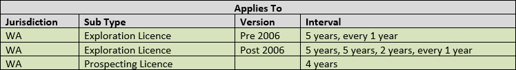 To assign a different interval to each sub type, move the Interval field to a column in the Applies To table.