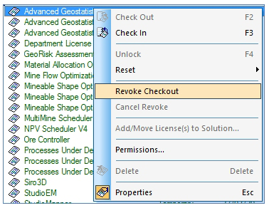 3. Right-click each license you wish to revoke and select Revoke Checkout: