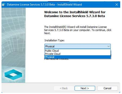 License Services can operate within both physical (on premises) and cloud (on premises and Internet) environments and will automatically configure itself to the specified environment, which must be selected during installation.