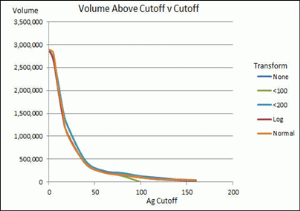 For continuous isoshells (for example, representing grade), conditioning allows you to transform data to a different distribution - converting it to the log of the input data, or mapping it to fit a normal distribution. If the input sample distribution is approximately lognormal, then the normal and log transformations will usually reduce the effect of high sample values.