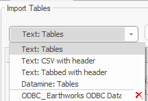 Alternatively, expand Define tables for import to select the format of data to be imported the next time a table is added, choosing from a default table type. See Drillhole Importer Data Sources, above.