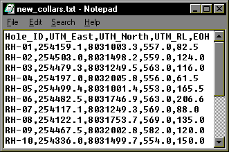 The Save As dialog is displayed so that you can select a directory in the Save In box and enter a file name in the File Name box. When exporting to text files, use the file name extensions *.txt or *.csv, for example "new_collars.csv".