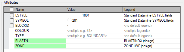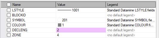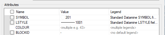 Note that the Standard Datamine SYMBOL, LSTYLE, COLOUR and FILLCODE legends will ignore these check boxes and always display their corresponding icon.