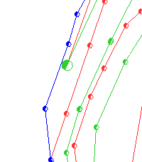 Using this facility, it is possible, for example, to add a symbol representing the specific grade of mineral content at key positions along a drillhole sample, alternatively, they may simply be used to show the ends of line segments.