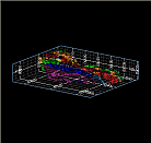 Grids typically indicate dimensions along the axes of the data display. One of the limitations of a standard flat grid is that it is often difficult to sense or interpret the extent of a 3D data object in a direction that is not orthogonal to the view. In the past, this conundrum has been resolved by allowing non-orthogonal grids to be viewed in the Design and Plots windows, and this type of measure is a very useful aid for denoting a measurement that is perpendicular to the viewing direction. For example;