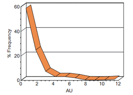 Incremental and Cumulative Histogram types can be shown in any of the formats above. Here's an example of a simple one-variable frequency chart for AU in both bin and line formats: