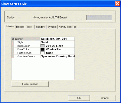 Interior: set the basic visual formatting for each bar or line, including foreground and background color etc.