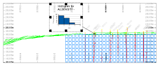 The following series of images shows a histogram plot item that has been inserted as a locatable plot item.