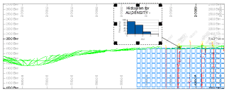 A two-point Line can also be defined to plot an imaginary line. Where this line intersects any section in view, the locatable plot item will be shown, referenced to that intersection position, for example: