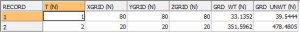 This output Summary file contains one record for each zone combination. This includes the optimum declustered grid size, the decluster weighted mean grade (GRD_WT) and the unweighted mean grade (GRD_UNWT). In the example below the *ZONE1 field is T.