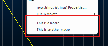 External files are displayed using the current default application for the associated file type. You display a file by right-clicking the associated object overlay in any 3D window. For example, in the image below, two macro files are associated with a string. Right-clicking the string in a 3D view reveals the following options: