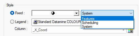 - Legend — allows you to select a predefined, system standard or user-created legend. Any data that cannot be matched to a legend interval is colored using the color shown in the Fixed dropdown list.