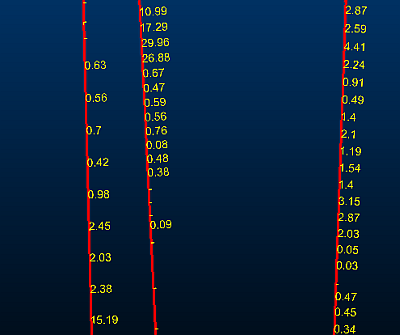 Note: If displaying a Depth label, the depth half way between the FROM and TO value for the segment is displayed.