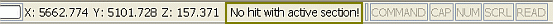 Here, any attempts to digitize or edit data, placed with a left-click, where the placement click falls outside of the grid (as shown in the above image), will result in a warning tone and the warning message 'No hit with active section!' being displayed in the Status Bar at the bottom of the main window, shown below.