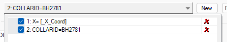 Column—pick an attribute value of the data object to display, for example, to display a Z coordinate value or lithology description.
