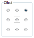 Offset—allows you to set the position of the label relative to the block. By default, the label is positioned at the centre of the block. The block is represented by the central black box in the grid, and the position of the label is set by clicking the required button.
