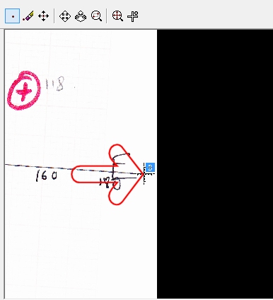 13. Finally, maximize the view and use the zoom commands to position a third point at the end of the horizontal access (this represents the "190" value position, even though it isn't shown in text, e.g.: