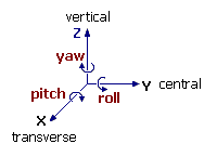 For Directional and Spot light types: define the Orientation of the light source by the Yaw (rotation about the Z or vertical axis), Pitch (rotation about the X or transverse axis) and Roll (rotation about the Y or central axis) angles relative to the object axes: