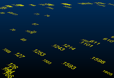 - 3D: the size of labels varies depending on the viewing distance, although when viewed at an excessively long distance, their display is turned off. If 3D is selected, then either Screen or Plane can be selected in the Orientation group.