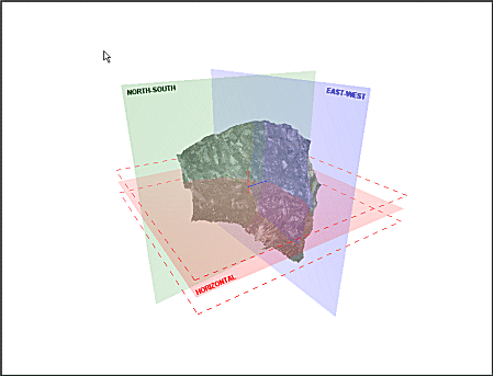 It is often useful to include planar section views in a 3D display. For example, you may wish to provide a flat zone upon which to digitize, or you may wish to define a fault plane according to, say, the display of Sirovision textured mesh.
