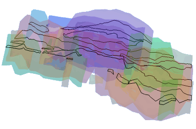 You can either choose a predefined section or choose the <Active Section> option. Selecting this will update the formatting of the wireframe object so the active section is used to generate an intersection. Changing the active section updates the view. This can be useful, for example, where a section definition table has been loaded for sectional interpretation of drillhole data in the context of an implicitly-modelled volume.