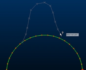 - If the first point is a right click, the point will snap to the closest edge, unless the snap mode had been set to Snap to Points, in which case it will snap to the closest string point (restricted to selected strings if any are present).