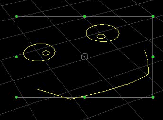 Data can be edited relative to the screen (that is, around a plane that is orthogonal to the current camera view). Note how the bounding box is shown as a 'flat' rectangle: