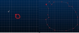 For example, the string below, zoomed in to show details is reduced, resulting in the output on the right. In this case, the reduction of points is relatively low as not many can be removed without adversely affecting the visible shape of the string: