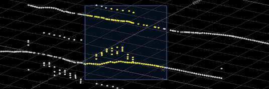 'Box selection' refers to the method by which data is selected. Once active, left-clicking and holding the left mouse button down allows you to drag to form a rectangular boundary of a variable width and height (always unrotated) across the 3D screen, capturing all data that is either wholly captured by the selection shape boundary or any data that fully or partly overlaps the selection area (depending on your data selection settings).