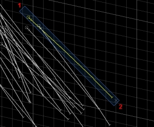 (1), then dragging to point 2, allows a single drillhole to be selected.