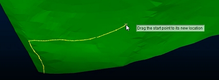 You can then click (left or right) and drag the start point of the road to the appropriate location, if required. The road will update dynamically during the dragging process, with the maximum gradient being honoured, e.g.: