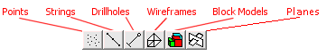If you have a loaded data object that is of the wireframe, point, block model, string or drillhole type, you can switch any of its non-critical attributes on or off as required (this procedure assumes that such data exists in memory):