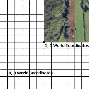 In this situation, using a 2D world coordinate system, the 0, 0 represents the world origin. The position at 5, 5 represents the location of the bottom left corner of the 'map', for example: