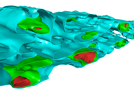Creating a resource model is an iterative process with greater understanding of the geology and grade distribution being achieved as the study proceeds, and more data becomes available. Isoshell wireframes can assist in this process: surrounding an area in 3D space, they allow boundaries between rock types to be delineated, and enable you to model the spatial distribution of grades by representing different cutoffs. Where controls on mineralization are unclear, Isoshell wireframes allow different levels of a lower cutoff to be investigated - providing a suitable domain for grade estimation.