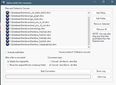 If you're planning to convert multiple files from .dm to .dmx format, we have added a new DM to DMX Conversion Utility to the Datamine Data Converter installation folder (typically, this is found at C:\Program Files\Datamine\Data Converter). Use it to convert folders of files and optionally backup your original .dm files.
