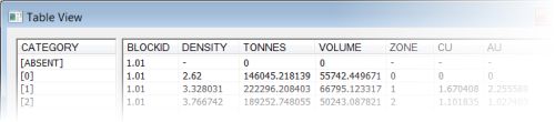 A value of '1' indicates that the block model cell has been completely mined out. Values between '0' and '1' indicate the portion (fraction) of the block that has been mined. If this option is selected then the proportion of the cell that is included in the results is the MINED value multiplied by the volume of the cell contained within the wireframe.