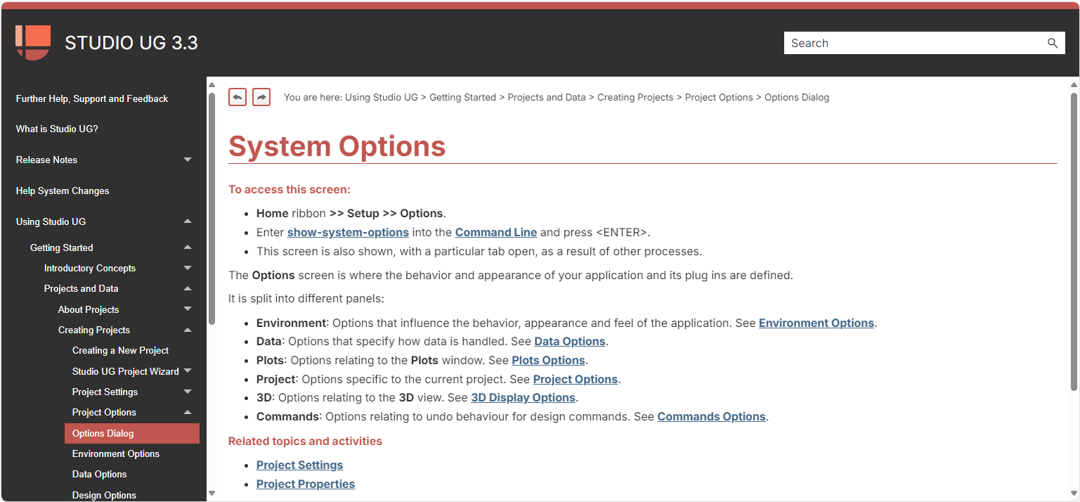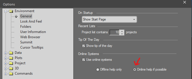 If you aren't already accessing our online documentation library, you can set up your application to point to the live content as opposed to your installed content using the Options screen. If it's not already, check Online help if possible to see help files in a web browser, showing the latest information we have for your version of software: