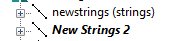 Loaded data that objects that have been modified, but not yet saved to a new or existing file, are listed in the Loaded Data control bar in Italics. Examples of this are shown in the image below. As soon as the objects have been saved to file, the italics are removed. In the example below, "newstrings" has not been edited since the last data save but "New Strings 2" has (and is also shown in bold as it is the current object).